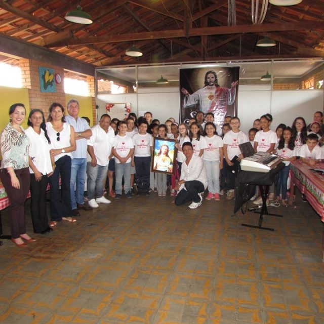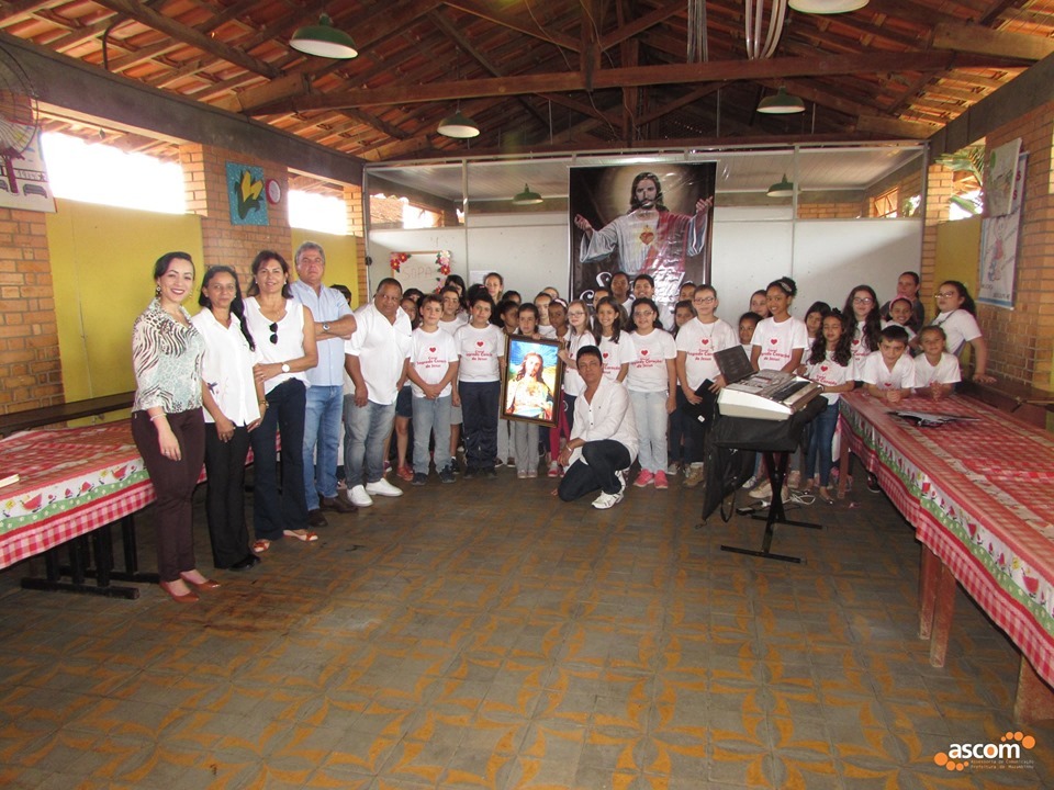 As crianças cantaram várias músicas ensaiadas pelo maestro Acácio reforçando a fé em Jesus Cristo.