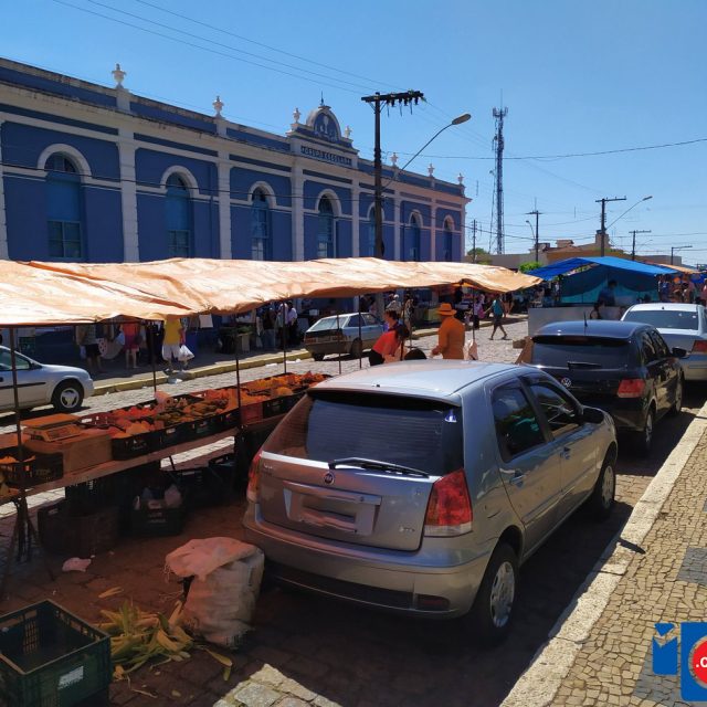 Carros estacionados prejudicam desenvolvimento da Feirinha de Sábado.