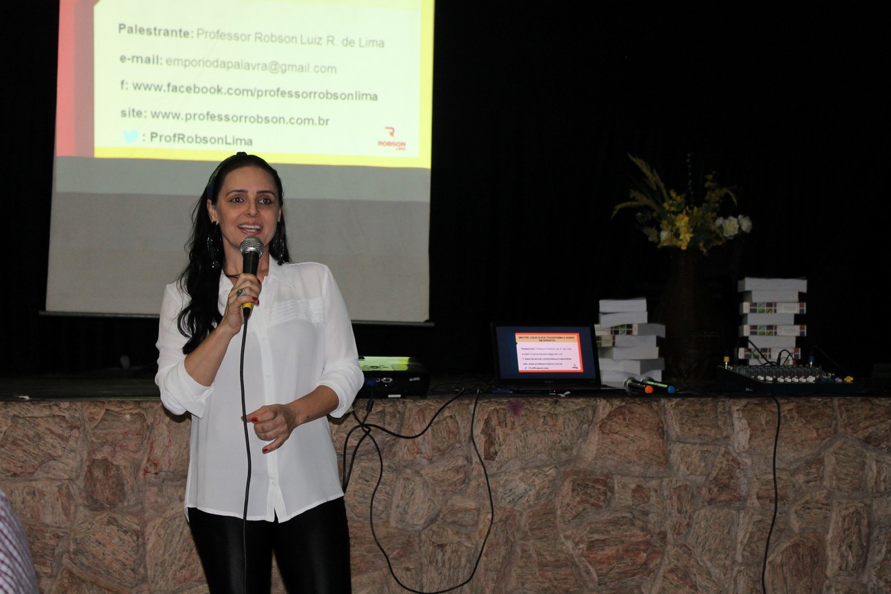 Os músicos Lincoln Tavares e Eliel Cuzzini fizeram a recepção dos professores, em seguida Lizandra Montipó fez a declamação da poesia “As três coroas” de Guilherme de Almeida. O afeto e o ato de ensinar foram a temática principal do evento. Com o tema “ Mestre aquele que transforma saber em espanto”, a palestra show levou leveza e humor aos professores.