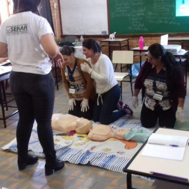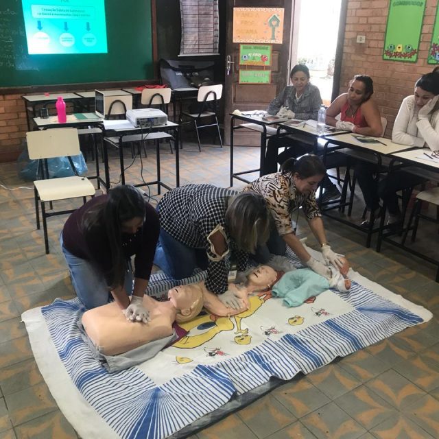 O treinamento, com aula teórica e prática foi para 30 profissionais da educação entre servidoras, professores, auxiliares e gestores das Cemeis e escolas municipais urbanas e rurais. A instrutora do Senar, a enfermeira Cinthia Feliciano D’assunção foi a responsável pelo conteúdo. As aulas ocorreram em duas turmas na Escola Municipal Sagrado Coração de Jesus e na Escola Municipal Frei Florentino as diretoras, Marli A. Dias Salomão e Valéria Xavier M. B. Lima, também passaram pelo treinamento. “Os profissionais receberam instruções para realizarem os primeiros socorros em situações de urgência e emergência, como manobras para reverter convulsões, desmaios, engasgos e paradas cardiorrespiratórias, “ explica a Marli Salomão, gestora municipal.