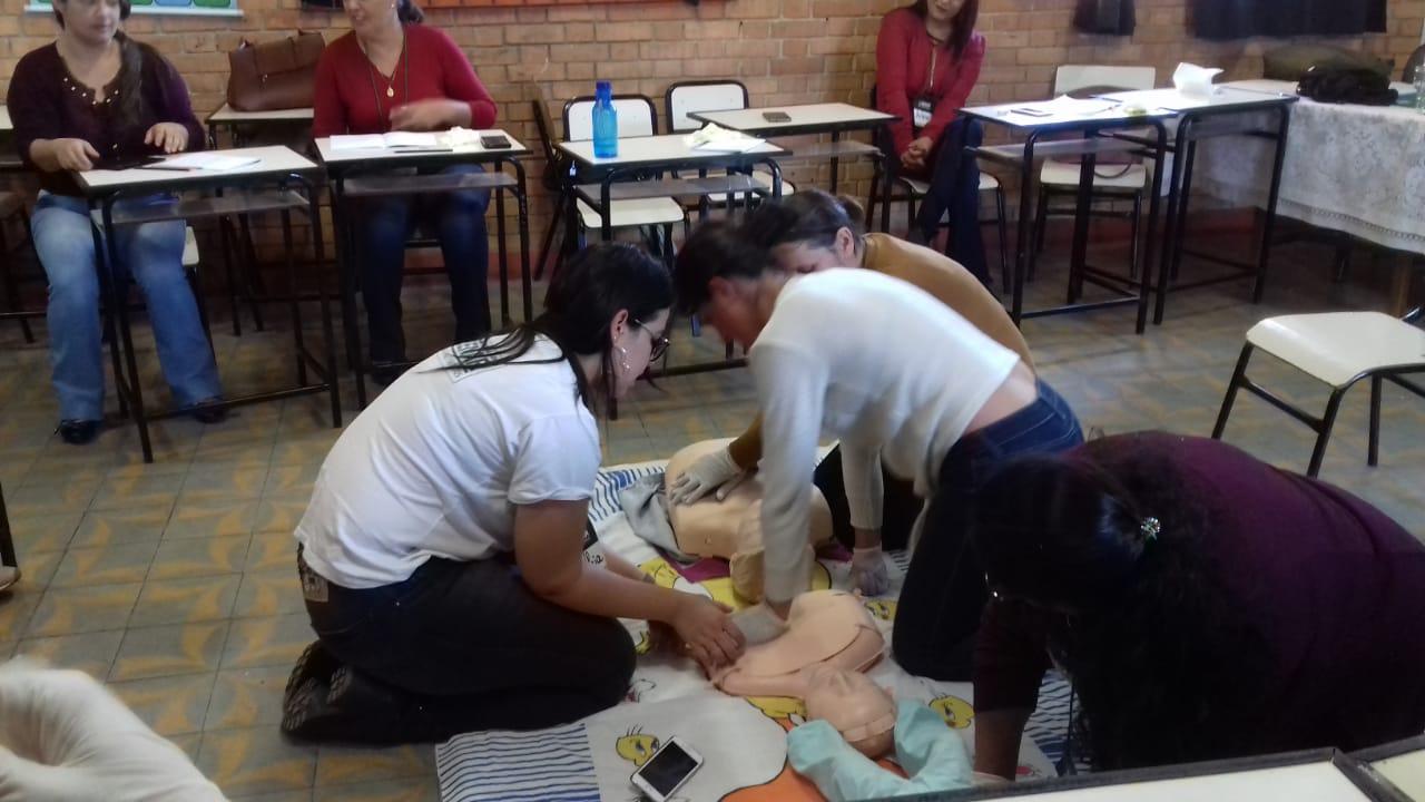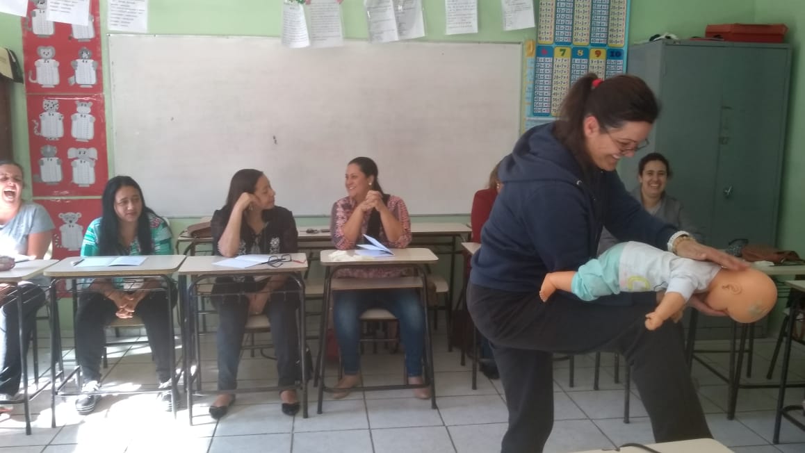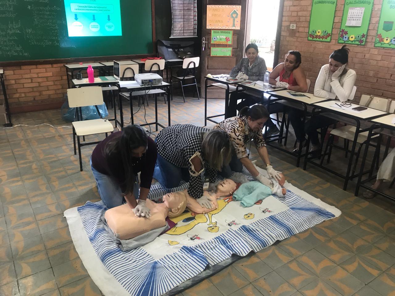 O treinamento, com aula teórica e prática foi para 30 profissionais da educação entre servidoras, professores, auxiliares e gestores das Cemeis e escolas municipais urbanas e rurais. A instrutora do Senar, a enfermeira Cinthia Feliciano D’assunção foi a responsável pelo conteúdo. As aulas ocorreram em duas turmas na Escola Municipal Sagrado Coração de Jesus e na Escola Municipal Frei Florentino as diretoras, Marli A. Dias Salomão e Valéria Xavier M. B. Lima, também passaram pelo treinamento. “Os profissionais receberam instruções para realizarem os primeiros socorros em situações de urgência e emergência, como manobras para reverter convulsões, desmaios, engasgos e paradas cardiorrespiratórias, “ explica a Marli Salomão, gestora municipal.