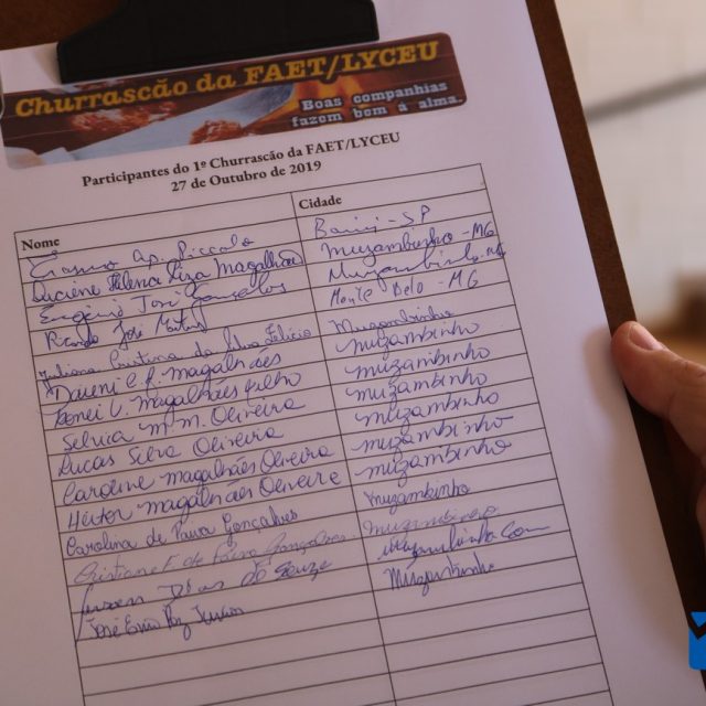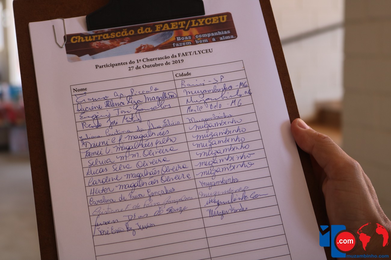 Aconteceu neste domingo, 27/10, um delicioso almoço, um churrascão, evento realizado para angariar fundos para o lançamento da “Pedra Fundamental”, de um Centro Educacional que abrigará as instalações da FAET e do Colégio Lyceu de Muzambinho, com esta solenidade de lançamento da Pedra Fundamental a instituição toma posse definitivamente do terreno doado pelo município, através do Prefeito Sérgio Esquilo, a pedido do Vereador Marinho Menezes.