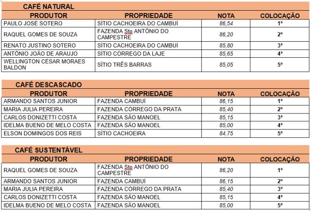 Parabéns aos Produtores de Cafés de nossa cidade que a cada ano trabalham para melhorarem a qualidade de seus cafés, agregando assim mais valor a sua produção.