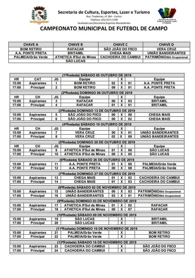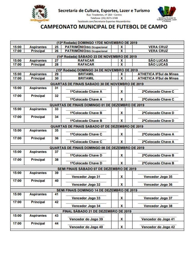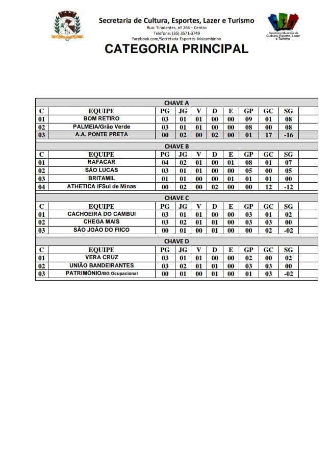 Mais Artigos DestaqueNosso EstadoPrevisão do Tempo Quase 300 cidades mineiras estão em alerta para onda de calor; Muzambinho está na lista DestaqueObituário Faleceu aos 64 anos o Sr. Helder Nilo Gaspar DestaqueEventos e FestasNossa Cidade Carreata do Papai Noel percorre bairros de Muzambinho nesta segunda-feiraDestaqueEsportesNossa CidadeClassificação Campeonato Municipal de Futebol de Campo Muzambinho Redação6 de novembro de 20191min0 Confira a classificação das equipes no campeonato de Futebol de Campo de nossa cidadeClique Aqui para ver os resultados em PDF Post Views: 1.064CampeonatofutebolmunicipalMuzambinho