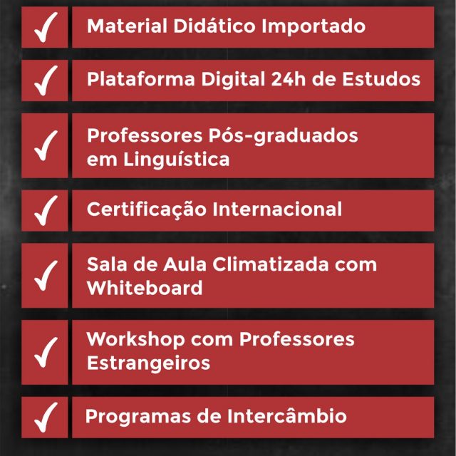 – Professores com formação em Letras, pós-graduados em Linguística e com vivência no Exterior.