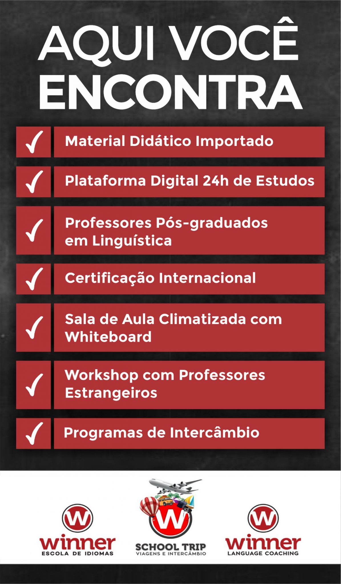 Faça hoje mesmo a sua matrícula e conheça os diferenciais que só a Escola Winner pode lhe oferecer: