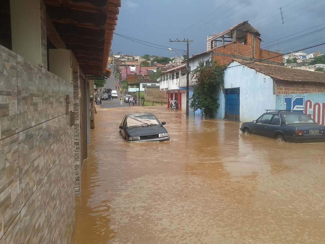 Forte chuva em Muzambinho alaga áreas baixas da cidade