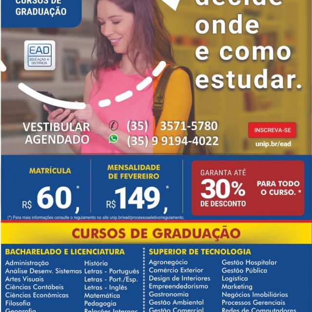 www.unip.br/ead ou 3571-5780 – Whatsapp: 35 9 9194-4022