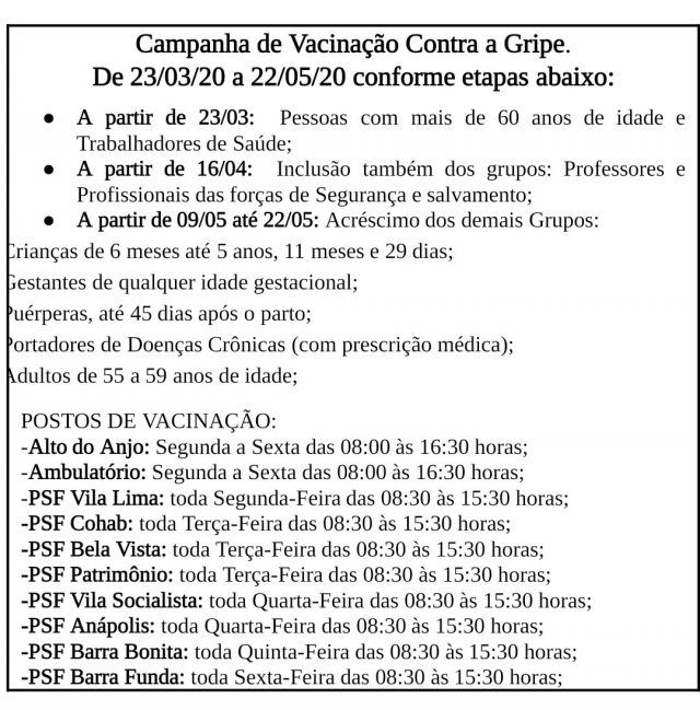 É importante ressaltar que a vacina é apenas para a prevenção da gripe e não tem relação com o coronavírus.