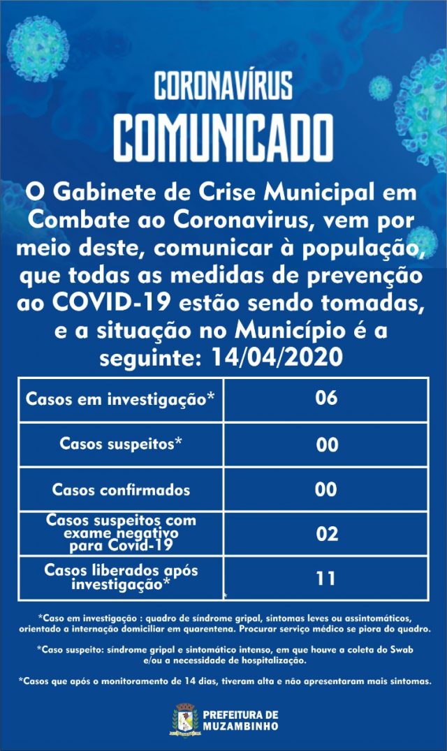 Abaixo Boletim do Gabinete de Crise em 14/04/2020.