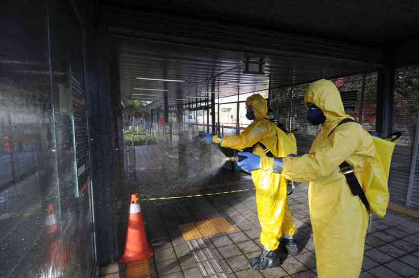 Neste ano, a desinfecção em pontos como estações do Move combate a maior preocupação, o coronavírus(foto: Leandro Couri/EM/D.A Press)