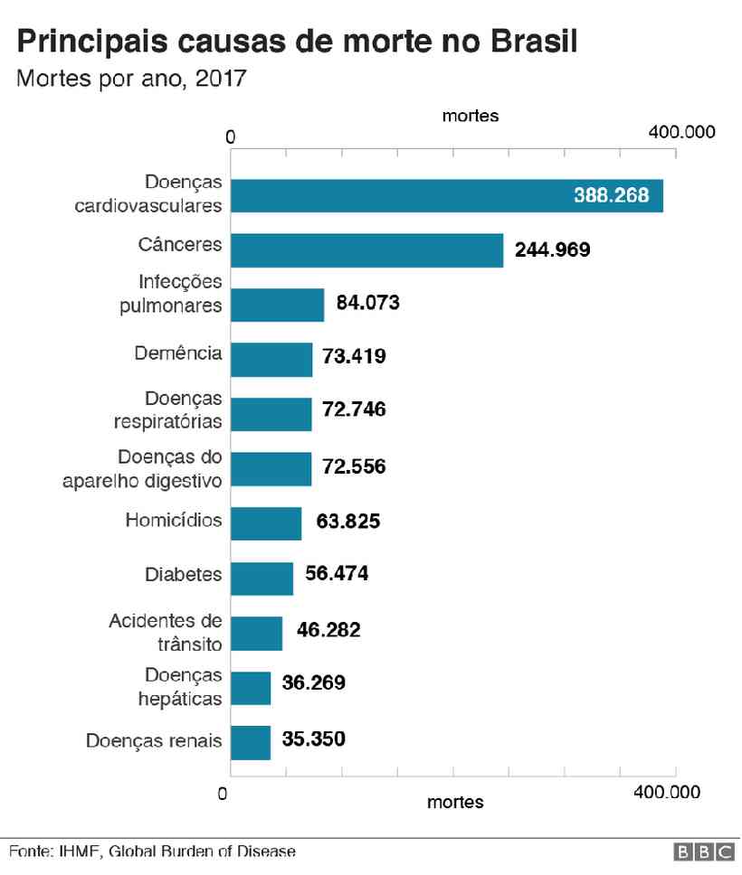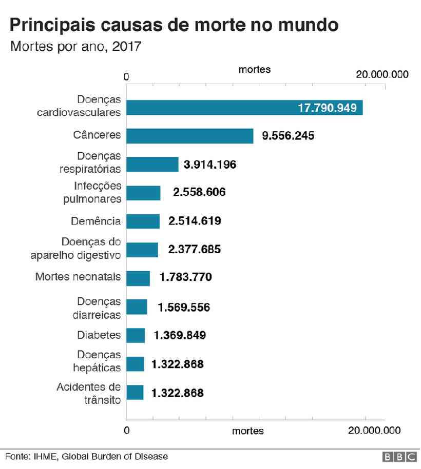 Maiores causas de morte no Brasil e no mundo em comparação com a COVID-19