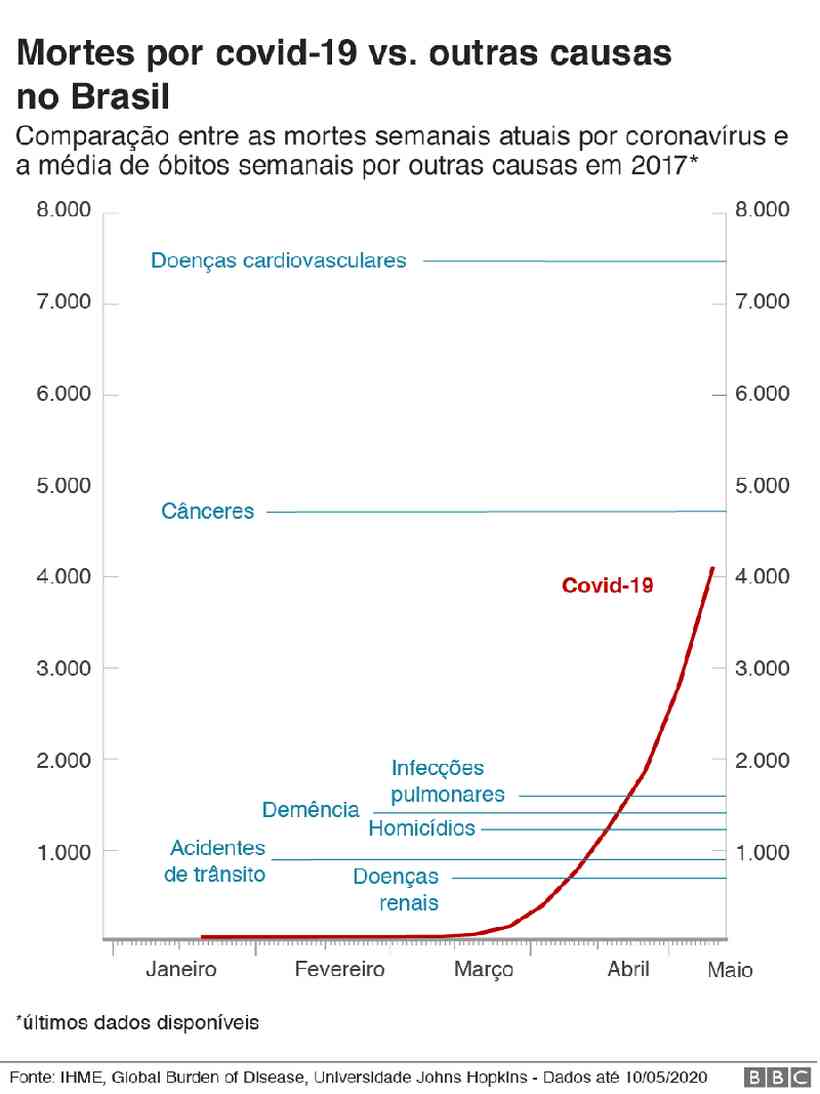 “Os cenário que vemos agora aponta para a possibilidade de que a COVID-19 fique entre as principais causas de morte de 2020, mas só saberemos disso com certeza daqui a alguns anos, quando tivermos os dados”, disse à BBC News Brasil o epidemiologista Theo Vos, pesquisador do Instituto de Métricas e Avaliação em Saúde da Universidade de Washington, nos Estados Unidos.