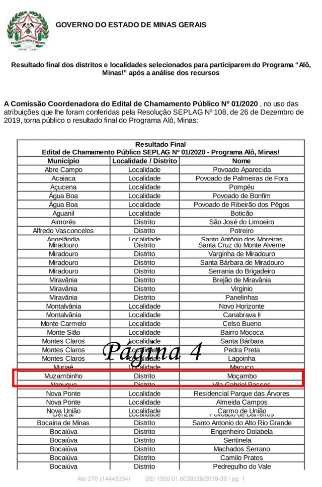Distrito do Moçambo contemplado – Governo de Minas divulga distritos que serão contemplados pelo Alô, Minas!