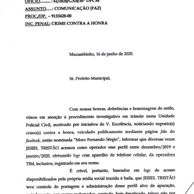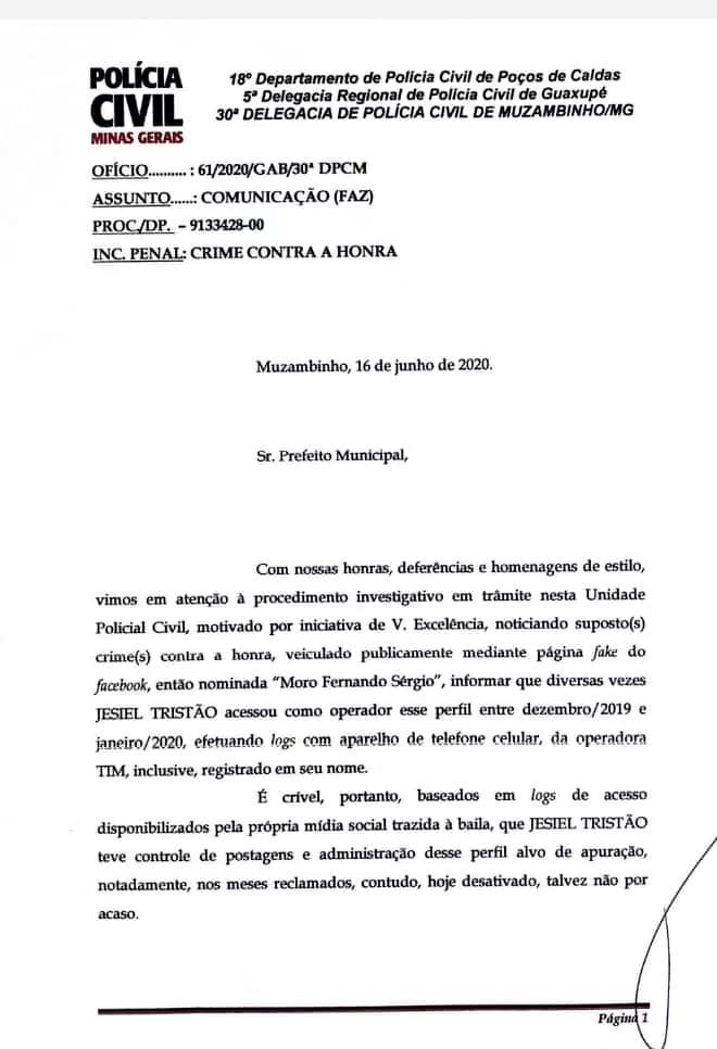 Mais Artigos DestaqueEventos e FestasNossa Cidade Venha participar da Feira Noturna de Muzambinho nesta sexta-feira, 12/12 DestaqueObituário Faleceu aos 71 anos a Sra. Elga de Almeida Gonçalves DestaqueEventos e FestasLegislativoNossa Cidade Câmara de Muzambinho homenageia profissionais da saúde em solenidade especialDestaqueNossa CidadePolicialTecnologiaPolicia Civil identifica operadores de página fake do facebook em Muzambinho. Redação20 de julho de 20201min0 Foi identificado pela PC de Muzambinho diversos acessos a página "Moro Fernando Sérgio", e Poletize Muzambinho de perfis como operadores. Post Views: 1.060FacebookfakePolicia CivilPrefeito