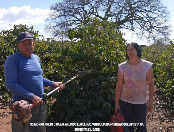 No bairro do Morro Preto, o casal Arlinda e Avelino também fazem a colheita sem contratar mão de obra. “A lavoura tem oito anos e este ano a carga surpreendeu”, explica Seu Avelino. Quando se escolhe um trabalho que gosta é prazer nos conta dona Arlinda que embaixo de um abrigo construído em meio aos pés de café aproveita a hora do almoço para apreciar a paisagem. A lavoura fica localizada em um dos pontos mais altos do município, onde é possível admirar a natureza e ouvir o ronco das derriçadeiras ao longe.