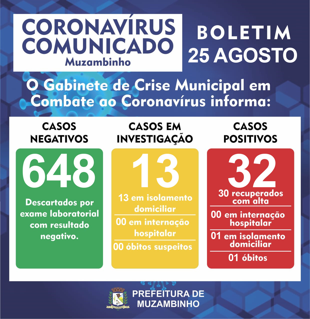 Sendo assim a situação dos casos de coronavírus em Muzambinho é a seguinte: