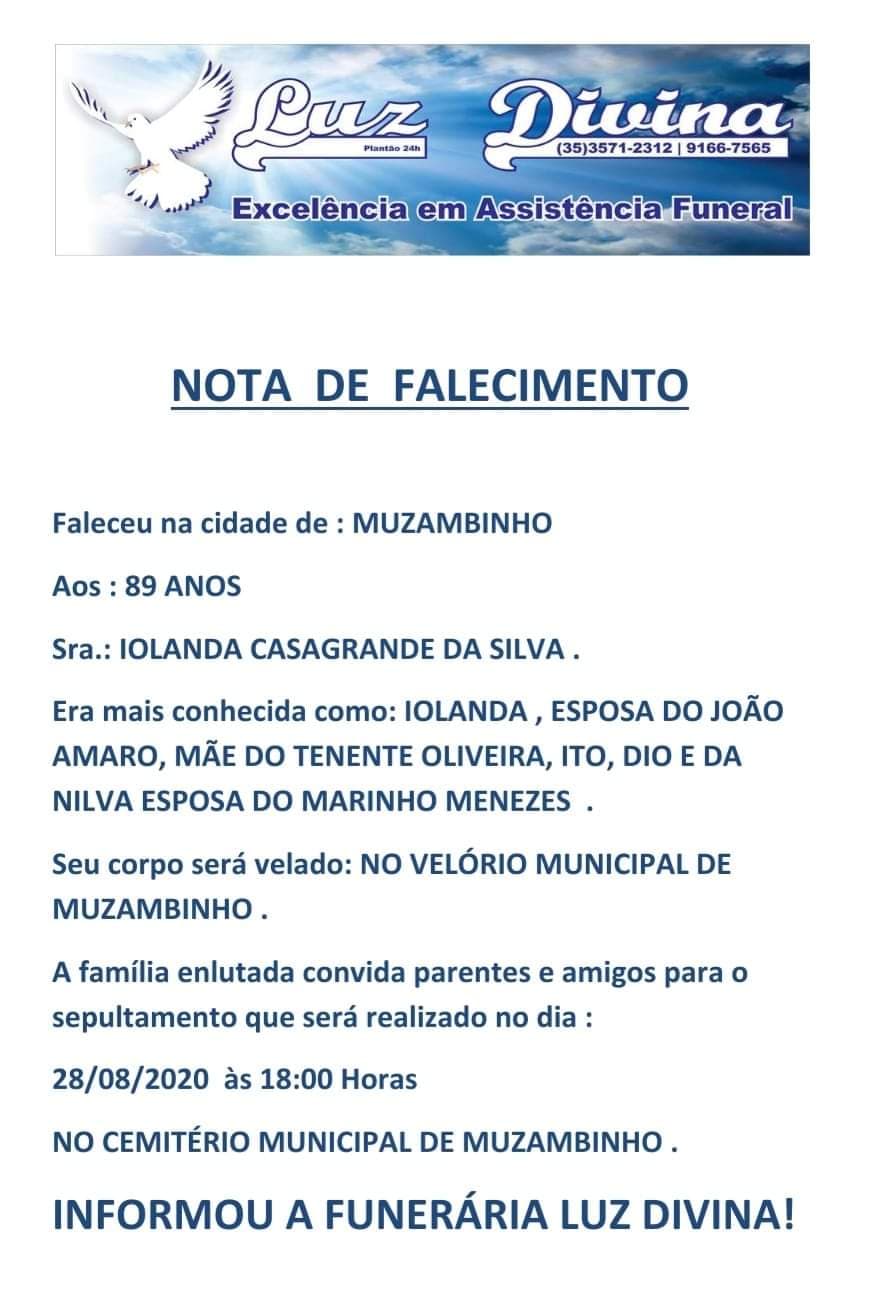 Mais Artigos DestaqueObituário Faleceu aos 89 anos a Sra. Vitória Couto dos Santos DestaqueObituário Faleceu aos 68 anos a Sra. Doralice Teixeira Gonçalves DestaqueObituário Faleceu aos 71 anos a Sra. Elga de Almeida GonçalvesObituárioFaleceu aos 89 anos a Sra. Iolanda Casagrande Redação28 de agosto de 20201min0 Post Views: 925EnterroFuneráriamorteobituárioSepultamentoVelório