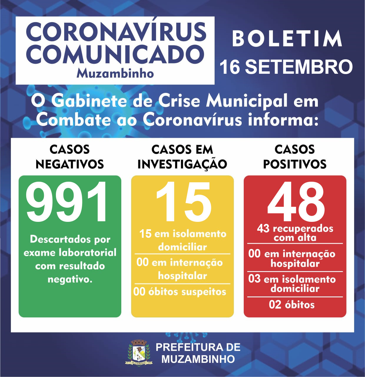Sendo assim a situação da cidade de Muzambinho com relação aos casos de COVID-19 é: