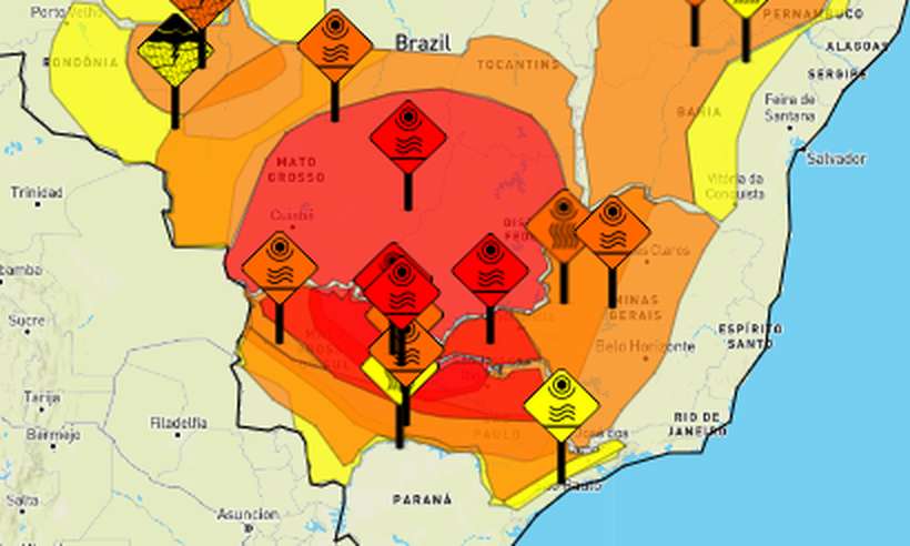 A onda de calor que atua no Brasil Central vem atingindo, principalmente, os estados de Mato Grosso, Mato Grosso do Sul, Goiás e a região entre o Triângulo Mineiro e São Paulo. A situação é ainda mais agravada pela queimadas florestais que vêm sendo recorrentes nestas regiões.