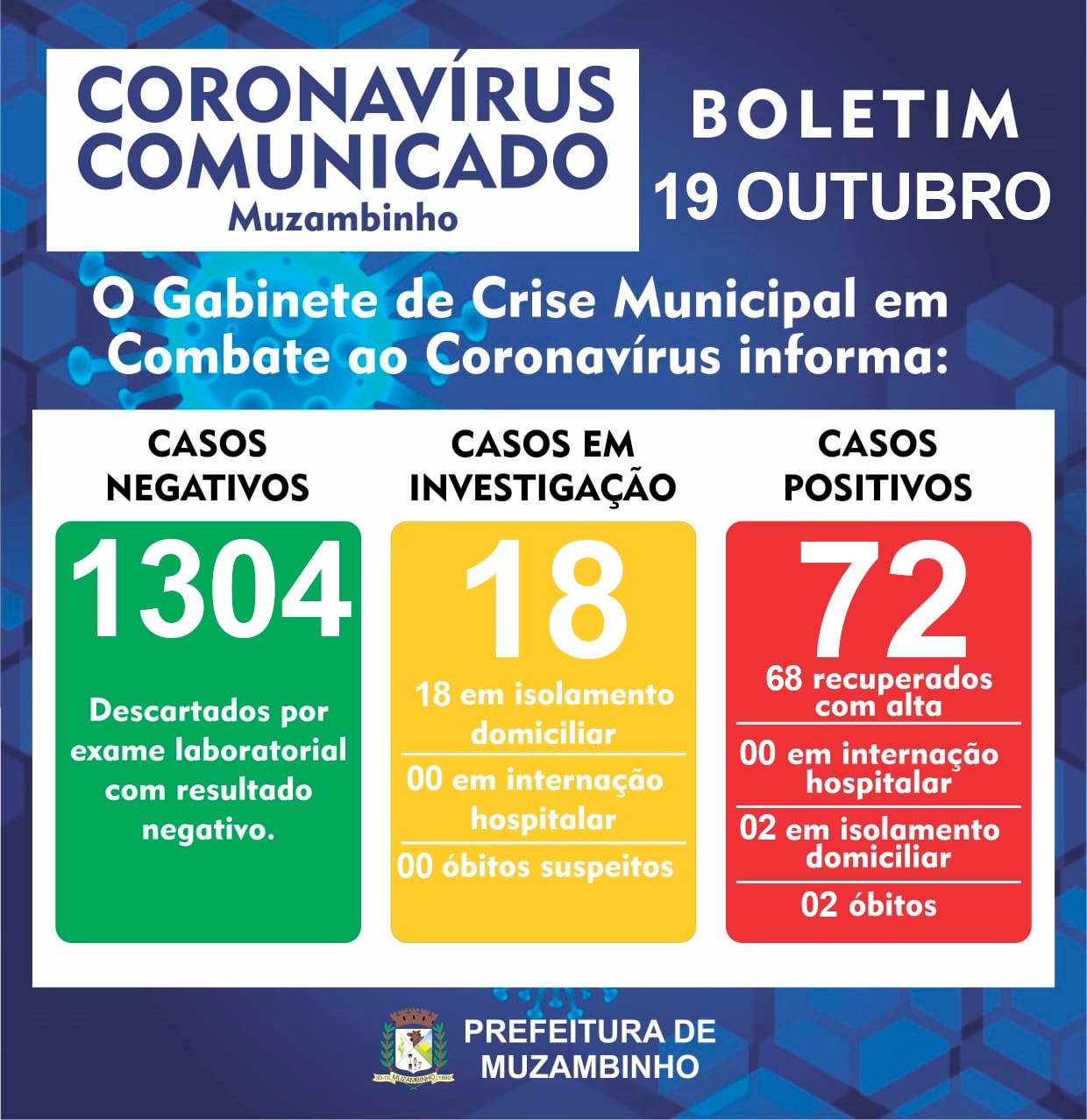 Com mais 3 casos confirmados, Muzambinho chega a 72 casos de COVID-19