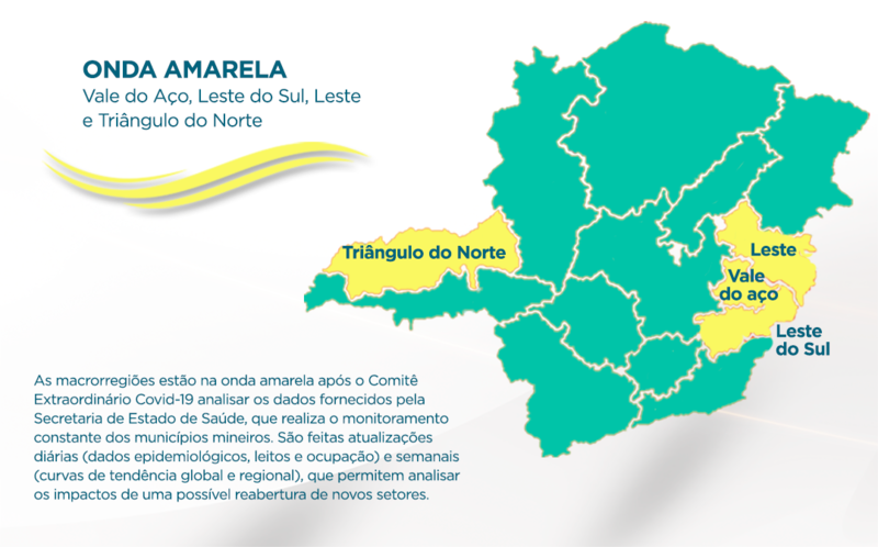 As macrorregiões Vale do Aço e Leste precisaram retornar para a onda amarela, juntando-se às regiões Triângulo do Norte e Leste do Sul. A fase permite a abertura de serviços não essenciais, como: