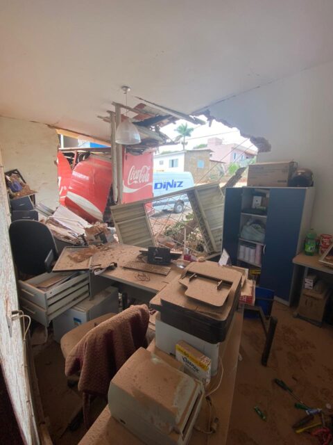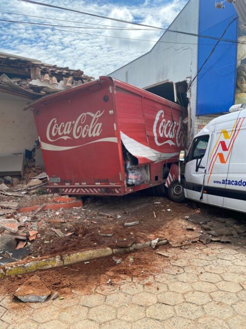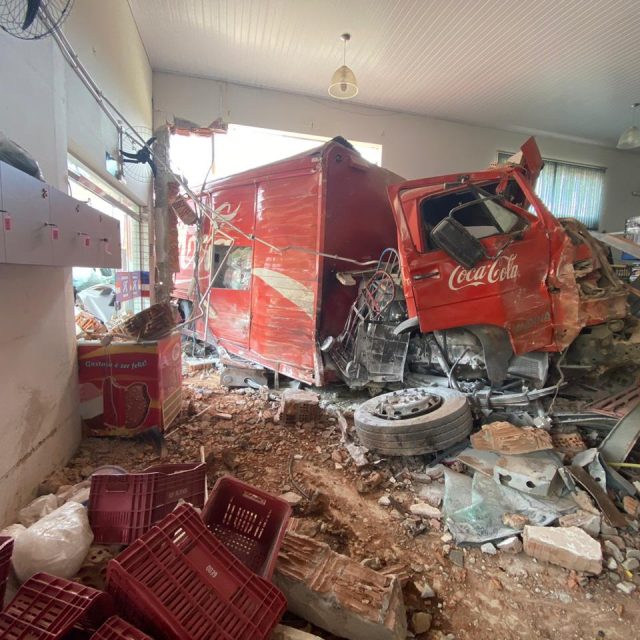 Caminhão perde os freios e causa acidente em supermercado da cidade de Juruaia