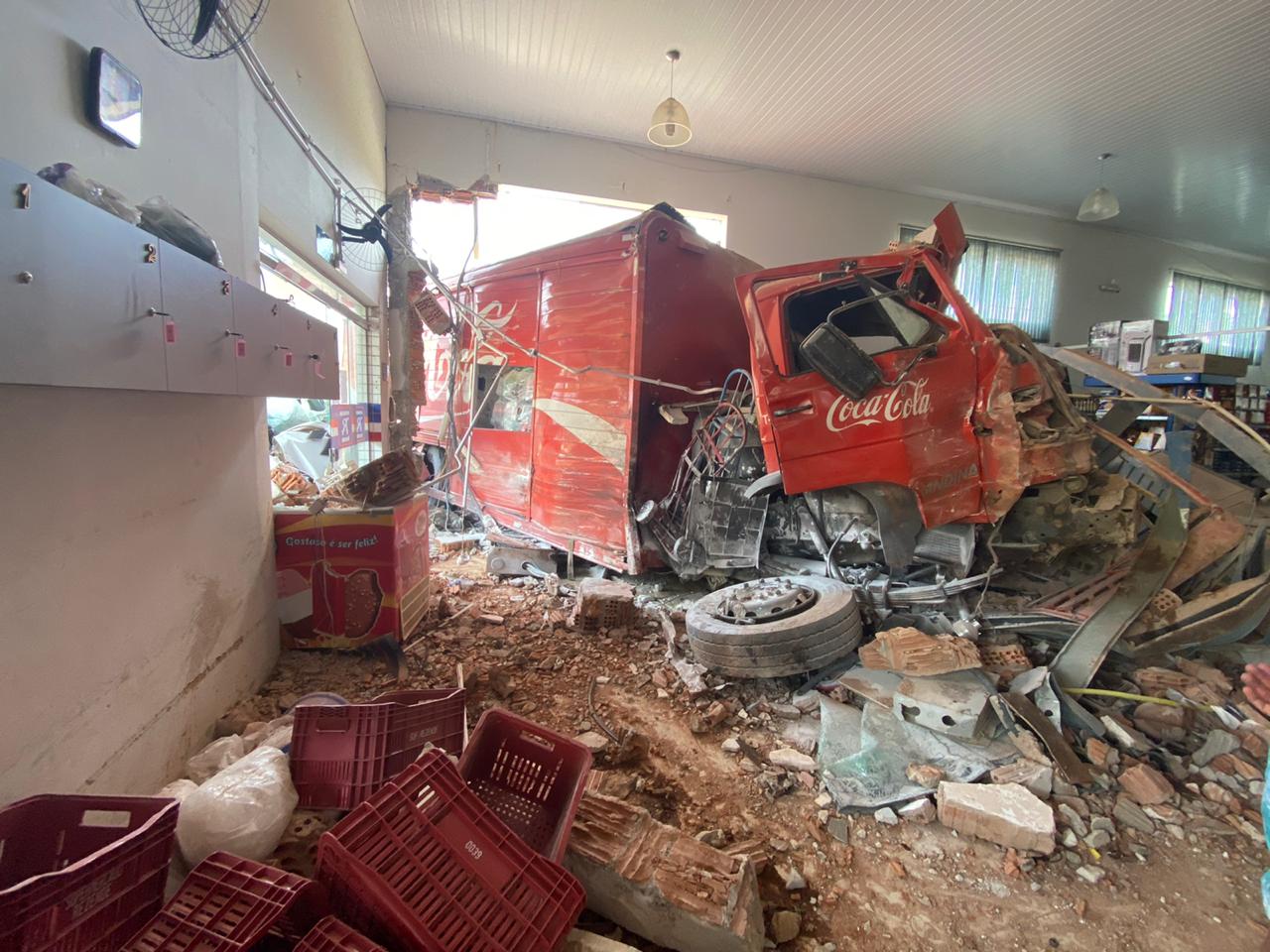 Caminhão perde os freios e causa acidente em supermercado da cidade de Juruaia