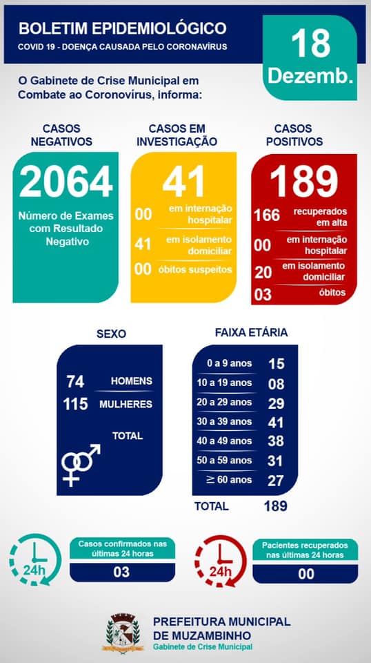 Boletim COVID-19 – Boletim do dia 18/12/20 – Muzambinho/MG
