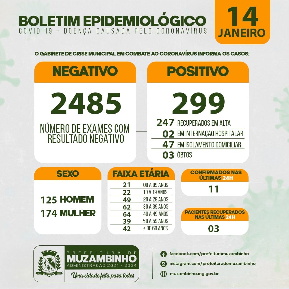 Boletim COVID-19 – Boletim do dia 14/01/21 – Muzambinho/MG