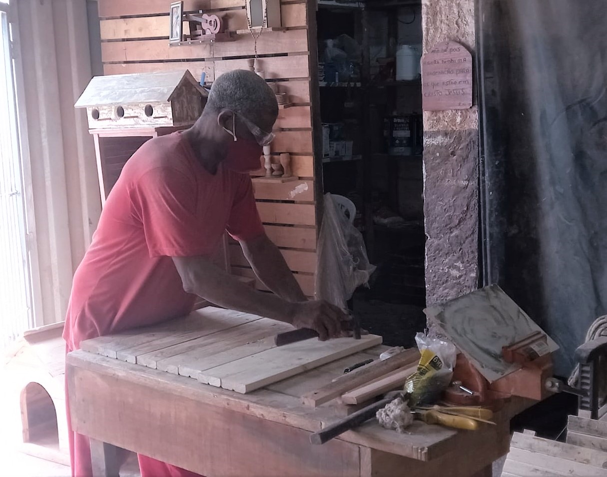 A marcenaria instalada dentro do presídio conta com a mão de obra de quatro detentos, e a madeira utilizada na fabricação dos itens é doada por serrarias e madeireiras da cidade. O maquinário e os materiais usados na oficina – como pregos, cola e tintas – são contribuições da Associação Lavrense para Assuntos de Segurança Pública (Alasp).