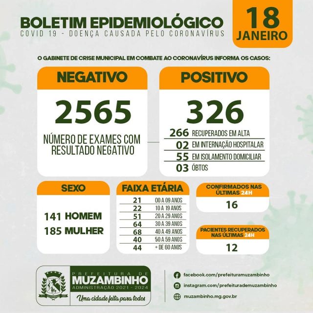 Boletim COVID-19 – Boletim do dia 18/01/21 – Muzambinho/MG