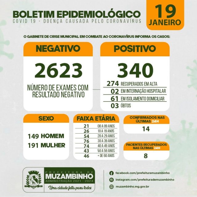 Boletim COVID-19 – Boletim do dia 19/01/21 – Muzambinho/MG