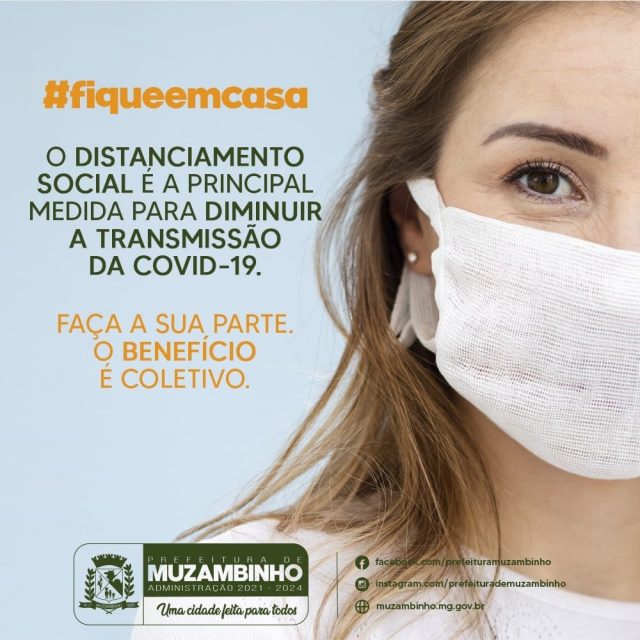 Todos sabemos que as vacinas contra a COVID-19 chegaram em nossa cidade, porém a imunização de toda a população ainda leva tempo, seguindo as recomendações do Governo de Minas. Neste momento, pedimos a todos que continuem seguindo as recomendações do combate ao vírus, pois só assim, com a ajuda da população, conseguiremos controlar a disseminação de forma eficaz. Contamos com a colaboração de toda a população muzambinhense.