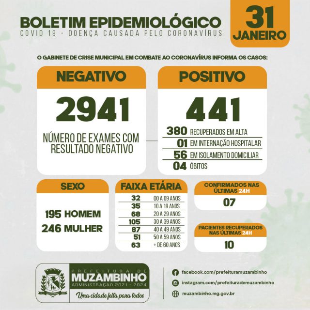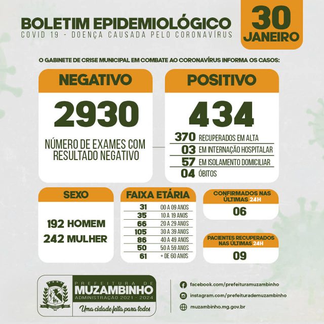 Boletim COVID-19 – Boletins dos dias 30 e 31/01/21 – Muzambinho/MG