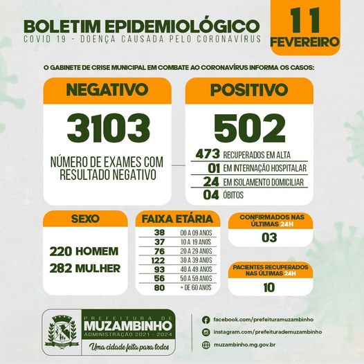 Boletim COVID-19 – Boletim do dia 11/02/21 – Muzambinho/MG