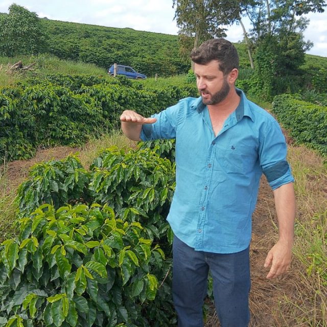 A assistência na cafeicultura ocorre desde julho de 2020, quando começou o acompanhamento do engenheiro agrônomo Marcos Bruno dos Santos para 30 cafeicultores. Ele explica as etapas durante os quatro anos de trabalho, que começam com um cronograma que envolve diagnóstico produtivo individualizado, planejamento estratégico, adequação tecnológica, capacitação profissional complementar e avaliação sistemática de resultados. ‘Apesar da seca, as lavoura tinham produtividade razoável. Os problemas começaram depois da colheita: a plantação foi ficando debilitada, ressecando muitos ponteiros e com desfolha. As plantas enfraqueceram e adoeceram. E percebemos que a produção ficou bastante debilitada,’ explica o agrônomo.