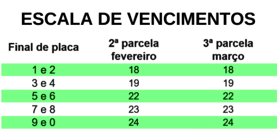 A segunda parcela do Imposto sobre a Propriedade de Veículos Automotores (IPVA) 2021 começa a vencer nesta quinta-feira (18/2), em Minas Gerais, para veículos com finais de placa 1 e 2. A escala segue até 24/2, se encerrando com os finais de placa 9 e 0.