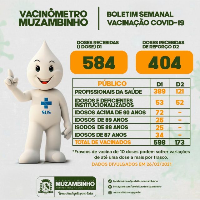 Confira o Boletim Semanal de Vacinação da COVID-19, 26/02/21 – Muzambinho/MG