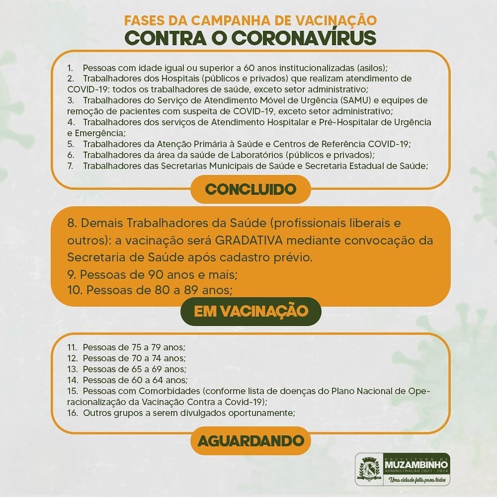 Prefeitura de Muzambinho divulga os Grupos que estão em vacinação contra a COVID-19