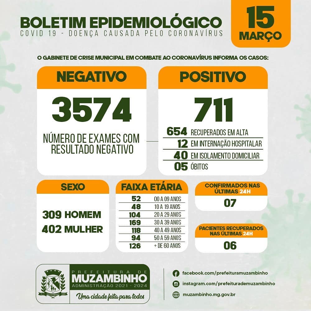 Boletim COVID-19 – Boletim do dia 15/03/21 – Muzambinho/MG