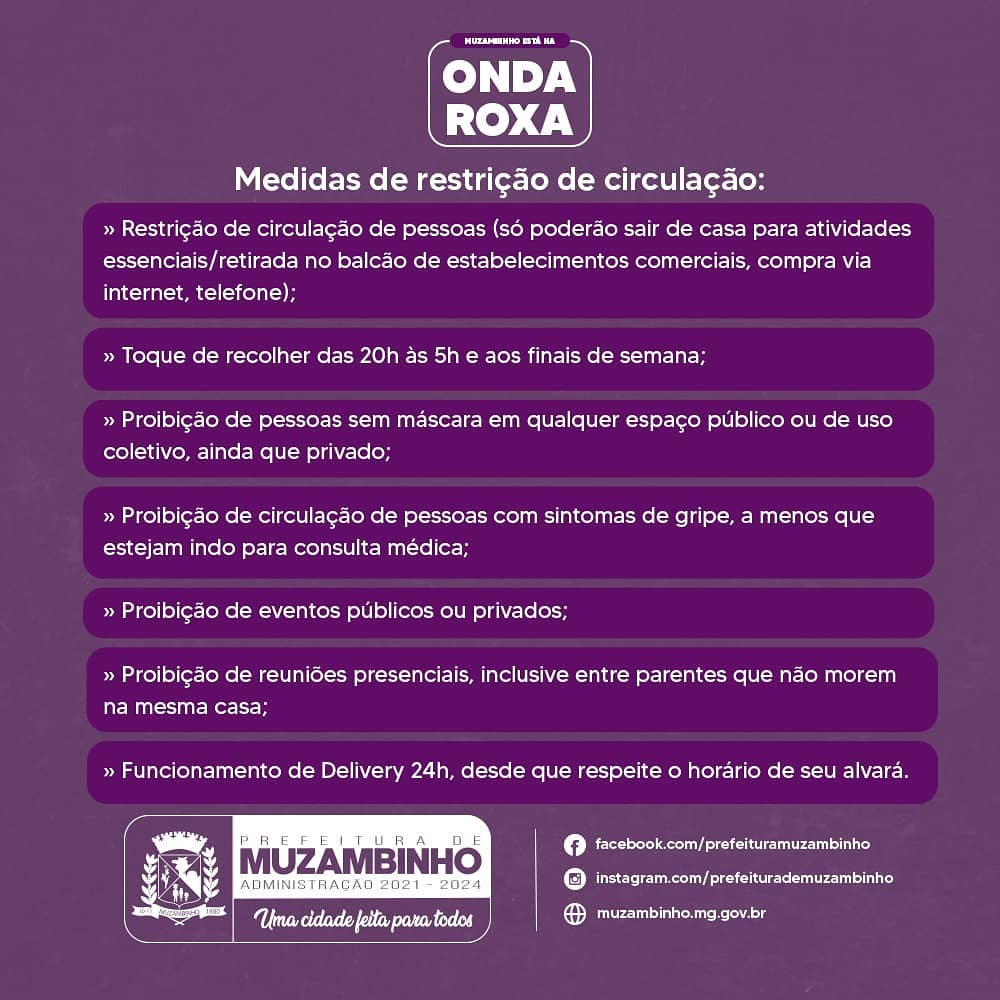 ATENÇÃO: Muzambinho adere a “Onda Roxa” do Minas Consciente, confira as restrições