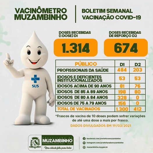 Confira o Boletim Semanal de Vacinação da COVID-19, 19/03/21 – Muzambinho/MG