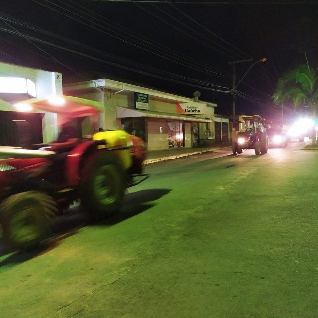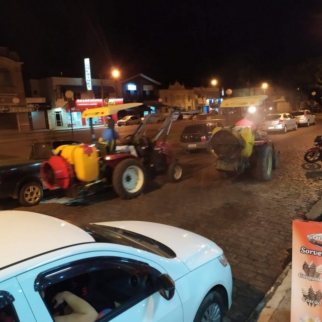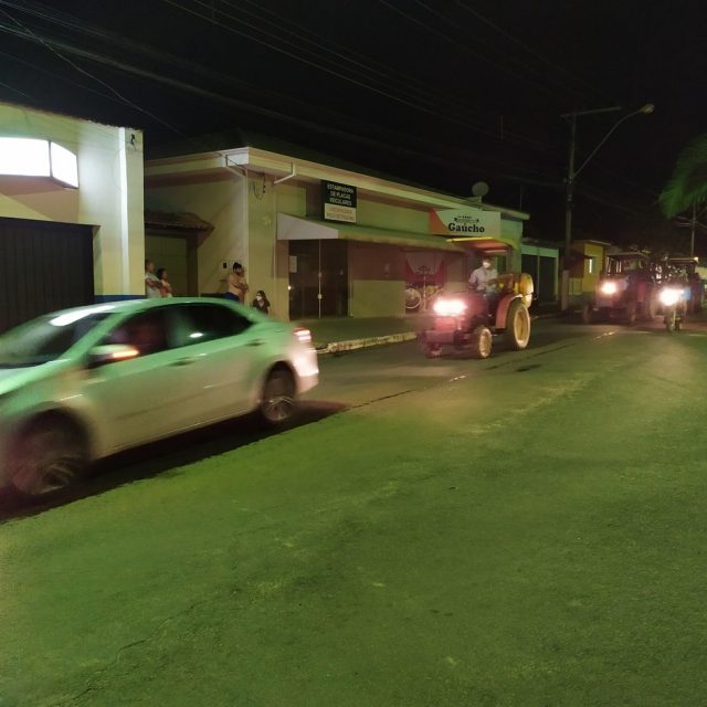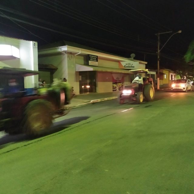 Após encerrarem suas atividades na lavoura, vários produtores rurais se dirigiram para a cidade com seus tratores e bomba pulverizadora para ajudar a desinfecção da cidade. O Prefeito Paulinho Magalhães juntamente com assessores e equipe orientaram e acompanharam a desinfecção, também estiveram acompanhando os Vereadores Gilmar e Afrânio.