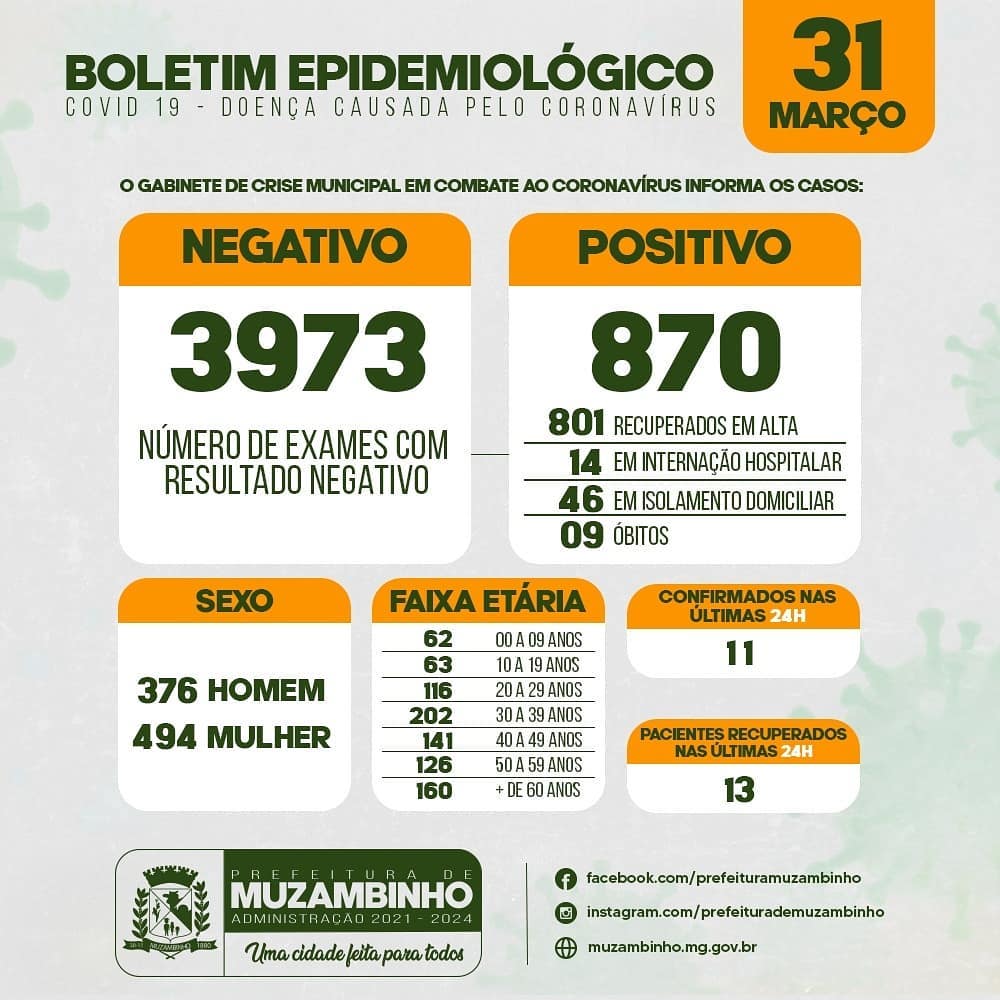 Boletim COVID-19 – Boletim do dia 31/03/21 – Muzambinho/MG