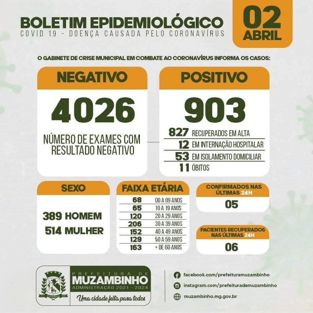 Boletim COVID-19 – Boletim do dia 02/04/21 – Muzambinho/MG