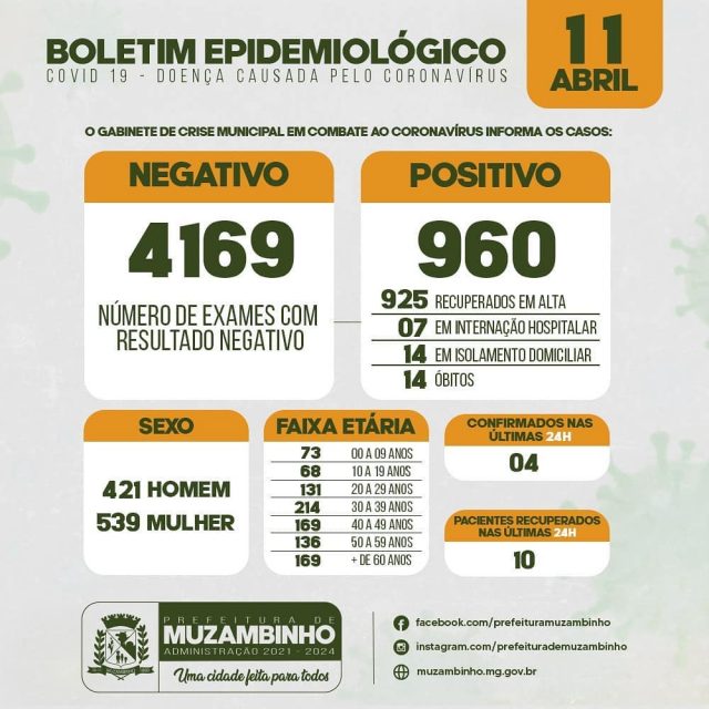 Boletim COVID-19 – Boletim do dia 11/04/21 – Muzambinho/MG