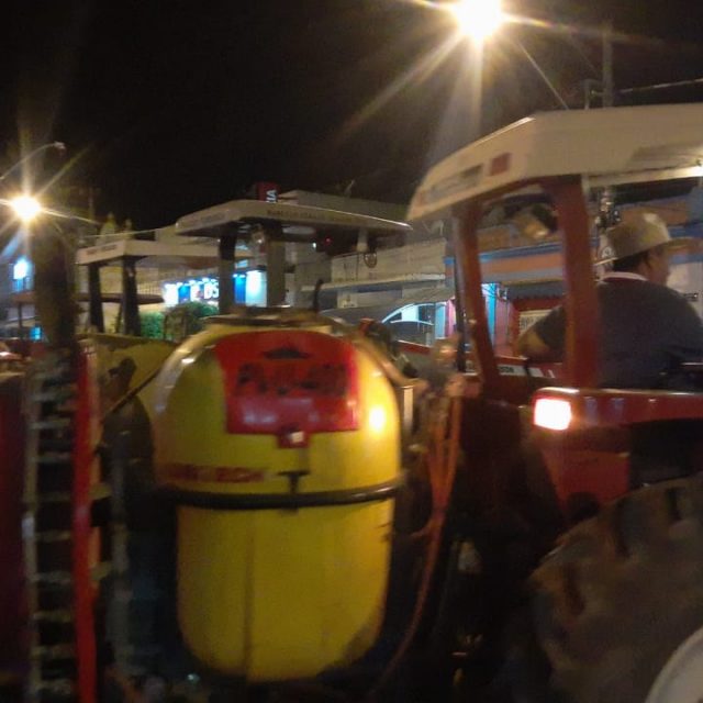 Desta vez aspersores jatão também realizaram a desinfecção. O caminhão pipa do laticínio do produtor Armando Santos ajudou no reabastecimento dos tanque, “ fizemos a concentração na avenida, assim que esvaziavam os taques, os produtores retornavam e reabasteciam ,”contou Marcelo Araujo, mobilizador dos cafeicultores.