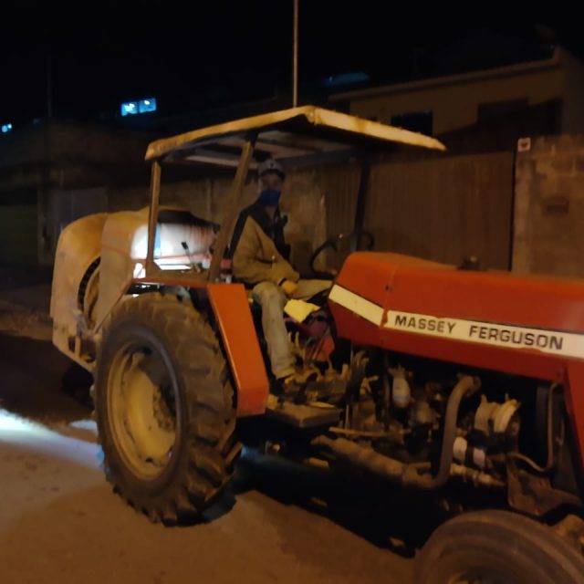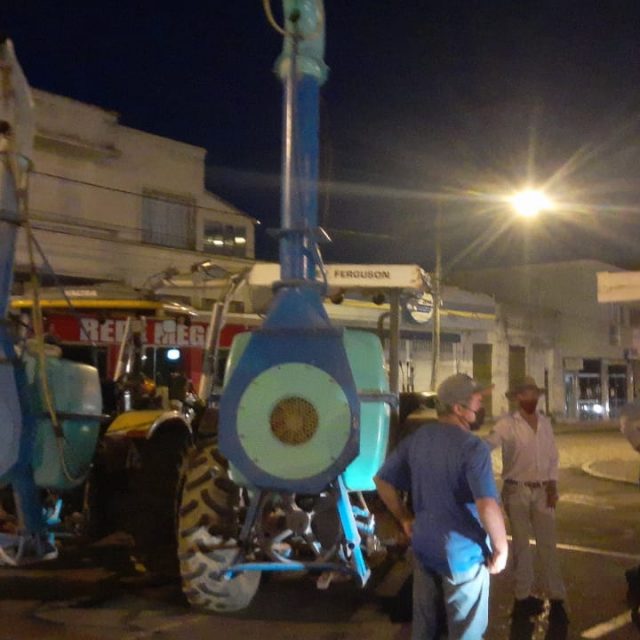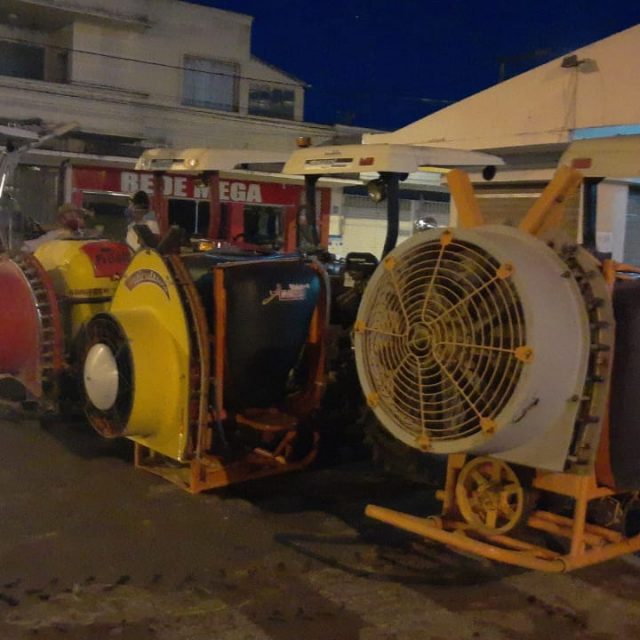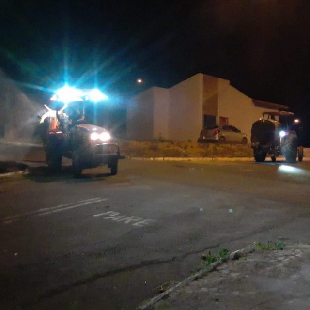 A Prefeitura de Muzambinho realizou na última sexta-feira (16) o trabalho de desinfecção noturna com pulverização das ruas, calçadas e locais públicos da cidade. Os produtores rurais começaram as 19 horas e encerraram após as onze horas , “percorremos o máximo de ruas possíveis, “ disse Joel Bócoli, que fez questão de participar como voluntário nas três vezes.