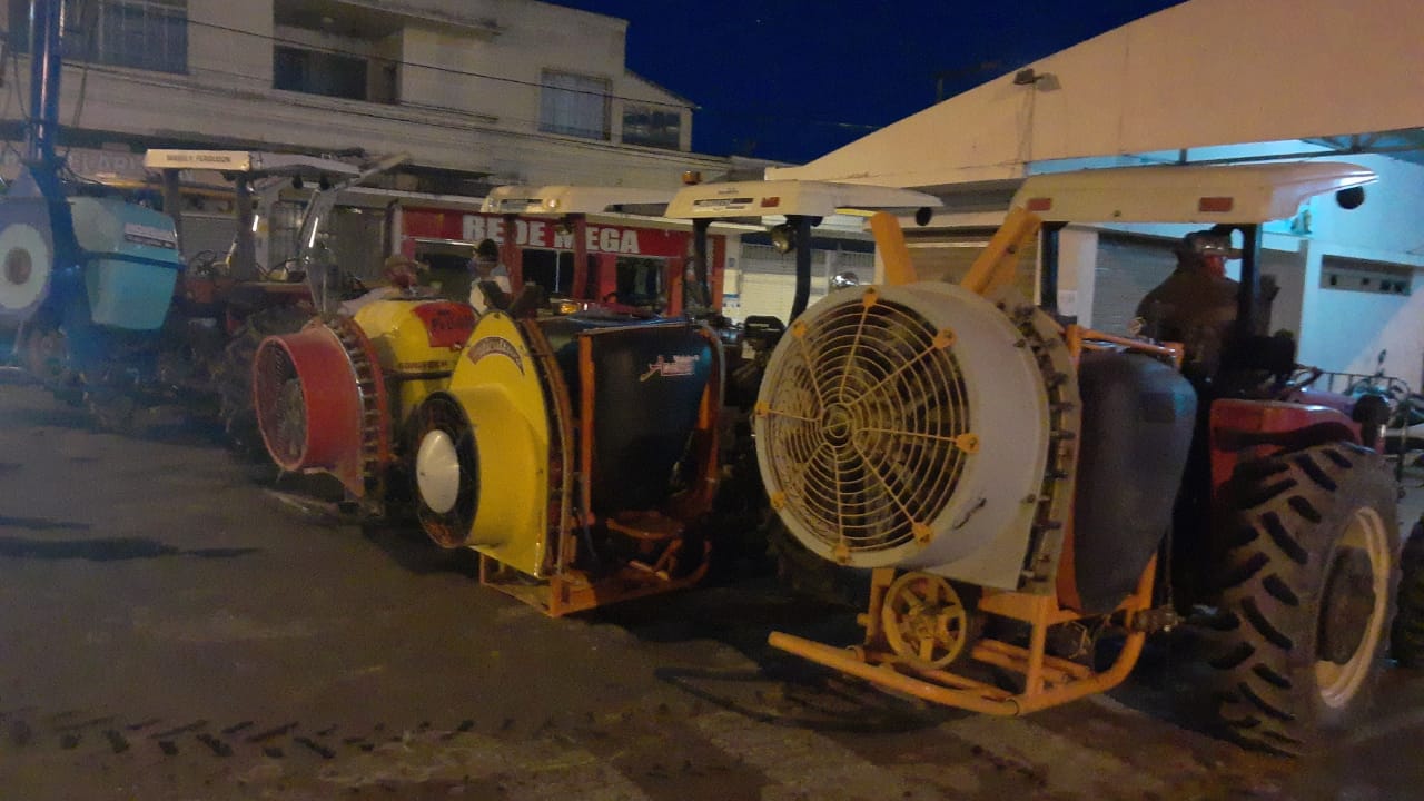 A Prefeitura de Muzambinho realizou na última sexta-feira (16) o trabalho de desinfecção noturna com pulverização das ruas, calçadas e locais públicos da cidade. Os produtores rurais começaram as 19 horas e encerraram após as onze horas , “percorremos o máximo de ruas possíveis, “ disse Joel Bócoli, que fez questão de participar como voluntário nas três vezes.